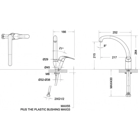 • Гибкая подводка: 450mm M10-G1/2 SS 2шт