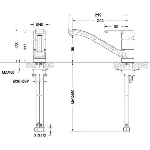 • Гибкая подводка: 450mm M10-G1/2 SS 2шт