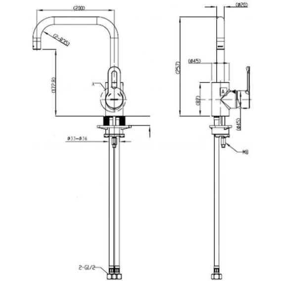 • Гибкая подводка: 450mm M10-G1/2 SS 2шт