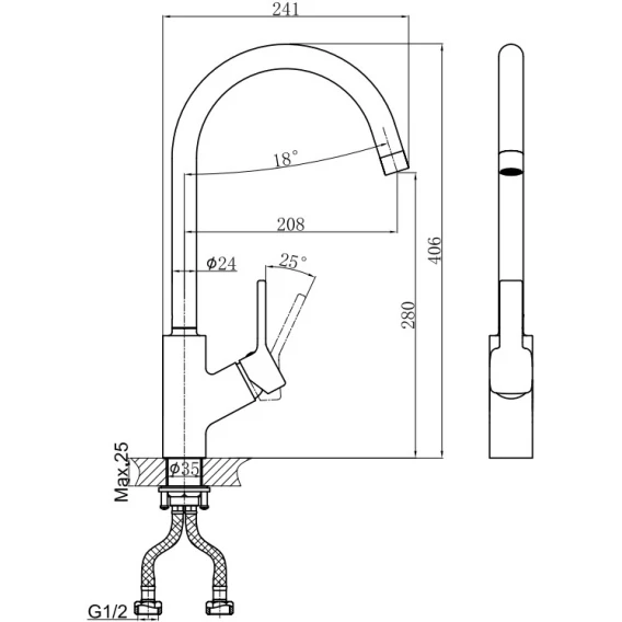 Длина излива 20.8 см