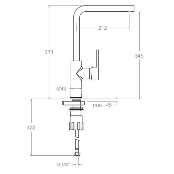 Длина излива 21.2 см