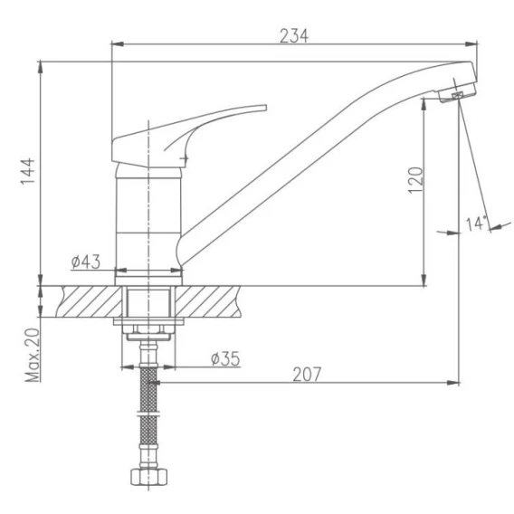 Длина излива 20.7 см