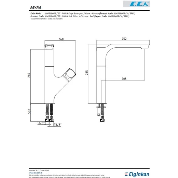 Душевой гарнитур E.C.A Myra 102146030HEX