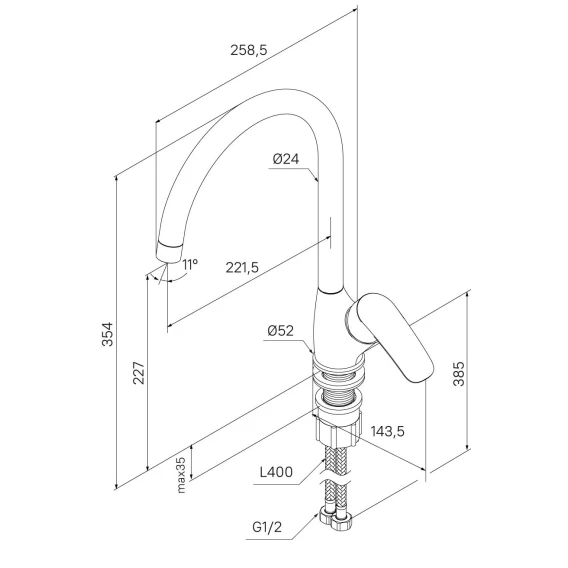 Длина излива 22.15 см