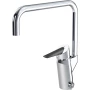 Смеситель для кухни с удобной рукояткой, высоким поворотным изливом и аэратором. Угол поворота излива составляет 120° (заводская установка). По желанию поворот излива может быть ограничен от 0° до 60°. Клапан посудомоечной машины закрывается автоматически через 4 или 12 часов (коротким нажатием клапан открывается на 4 часа; продолжительным нажатием в течение 5 секунд клапан открывается на 12 часов). Работает от батареи 6 В. В производстве были использованы только экологические материалы.
