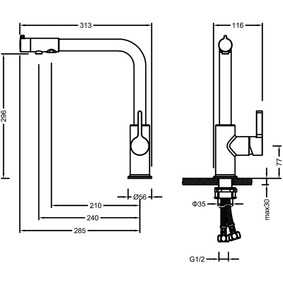 Высота излива 29.6 см