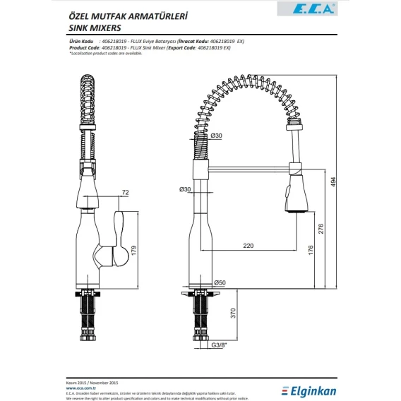 Смеситель для кухни E.C.A Kitchen Mixers 406218019EX