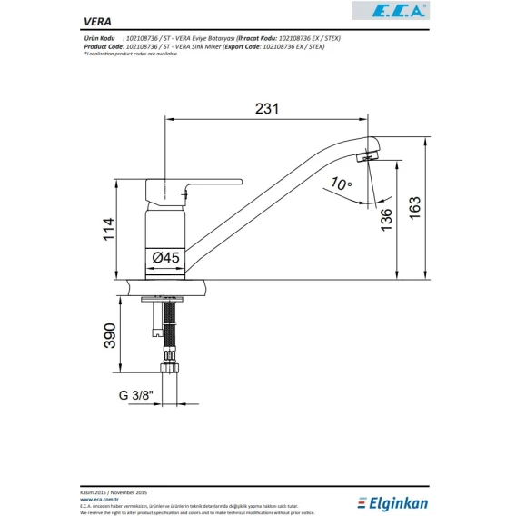 Смеситель для кухни E.C.A Vera 102108736EX