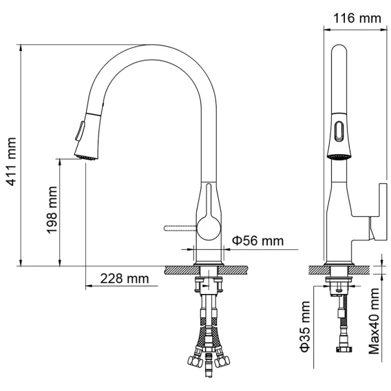Крепление, Аэратор, Гибкая подводка, Душевой шланг, Душевая лейка