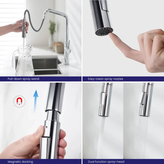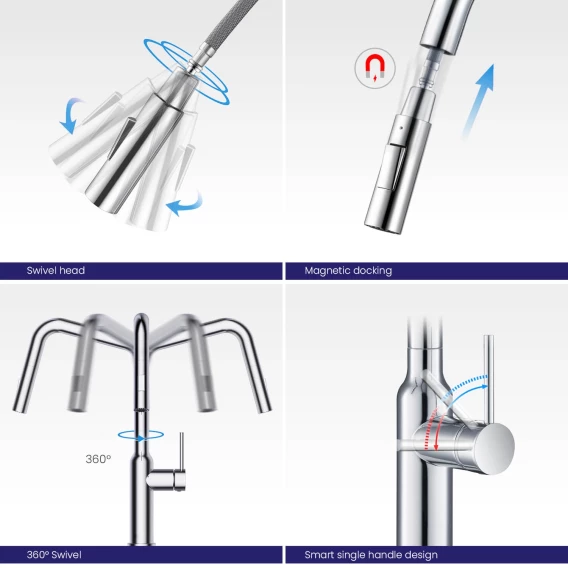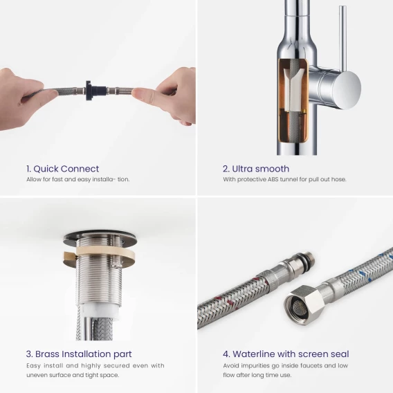 Крепление, Аэратор, Гибкая подводка, Душевой шланг, Душевая лейка