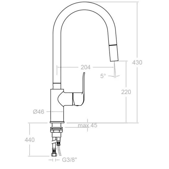 Крепление, Аэратор, Гибкая подводка, Душевой шланг, Душевая лейка