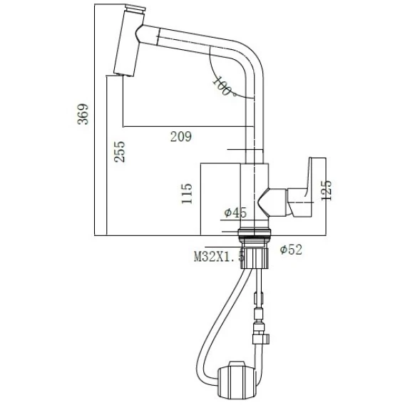 Крепление, Аэратор, Гибкая подводка, Душевой шланг, Душевая лейка