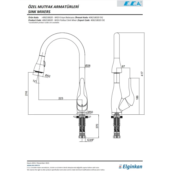 Смеситель для кухни E.C.A Kitchen Mixers 406218020EX