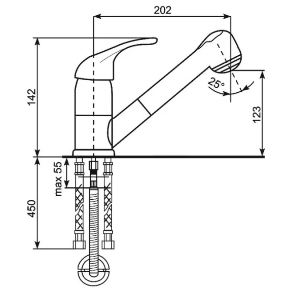 Крепление, Аэратор, Гибкая подводка, Душевой шланг, Душевая лейка