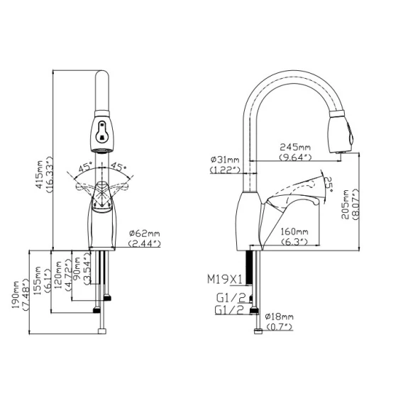 Высота излива 20.5 см