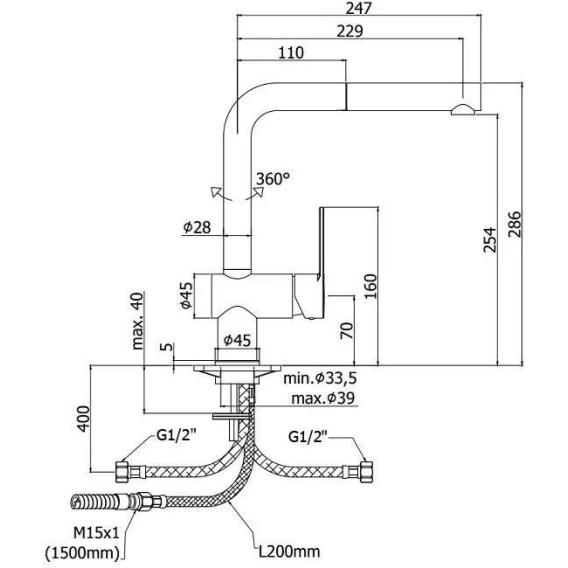 Высота излива 25.4 см
