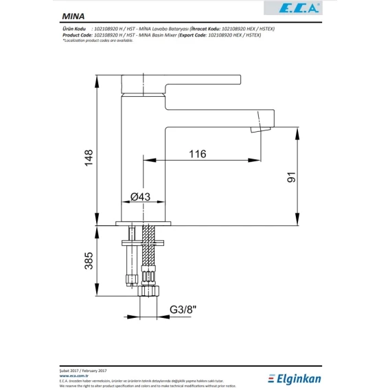 Смеситель для раковины E.C.A Mina 102108920HEX