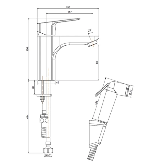 Смеситель для раковины без донного клапана с гигиеническим душем Paini Torre 98YO205/574