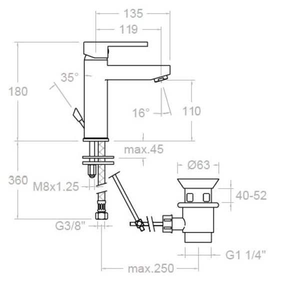 Крепление, Аэратор, Гибкая подводка, Донный клапан