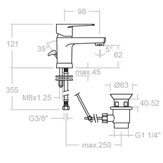 Крепление, Аэратор, Гибкая подводка, Донный клапан