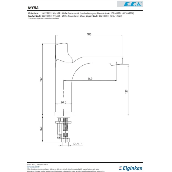 Смеситель для раковины E.C.A Touch 102188031HEX