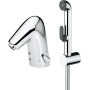 Бесконтактный смеситель для умывальника с гигиеническим душем Bidetta и донным клапаном. Смеситель укомплектован грязевыми фильтрами и обратными клапанами. При установке смесителя не требуется настройка его параметров, поскольку в нем используется улучшенный датчик с системой автофокуса. Клапан с импульсным управлением обеспечивает длительный срок службы батареи. Ограничитель потока (6 л/мин) уменьшает расход воды