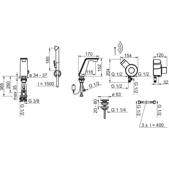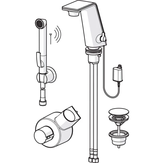 Крепление, Аэратор, Гибкая подводка, Донный клапан, Душевой шланг, Душевая лейка, Держатель для душевой лейки
