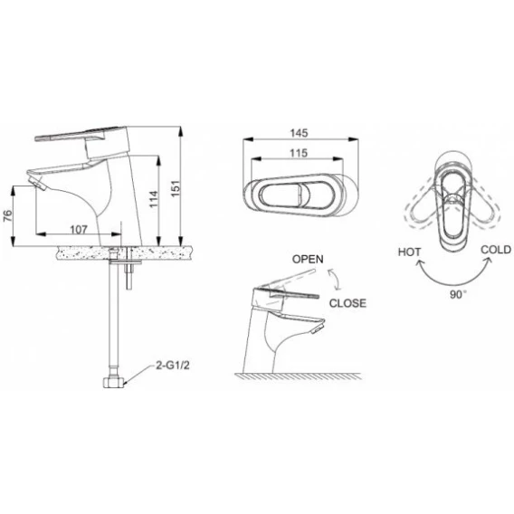 Смеситель для раковины без донного клапана Omnires Y Y1210NNI