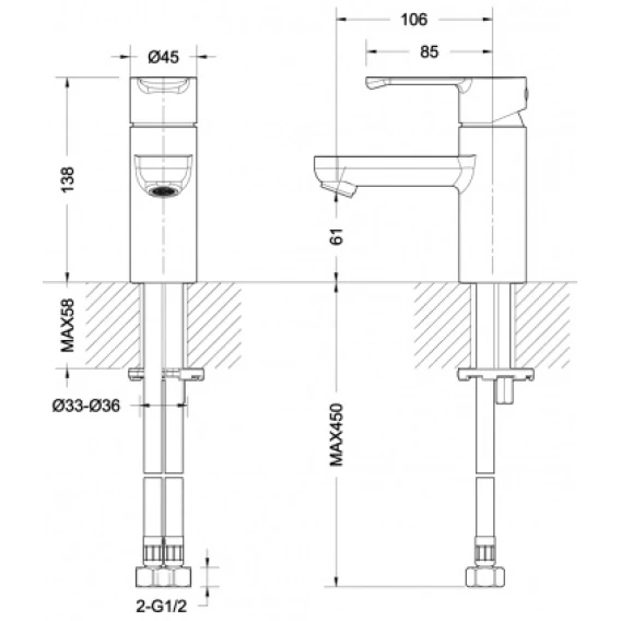• Гибкая подводка 450mm M10-G1/2 SS 2шт