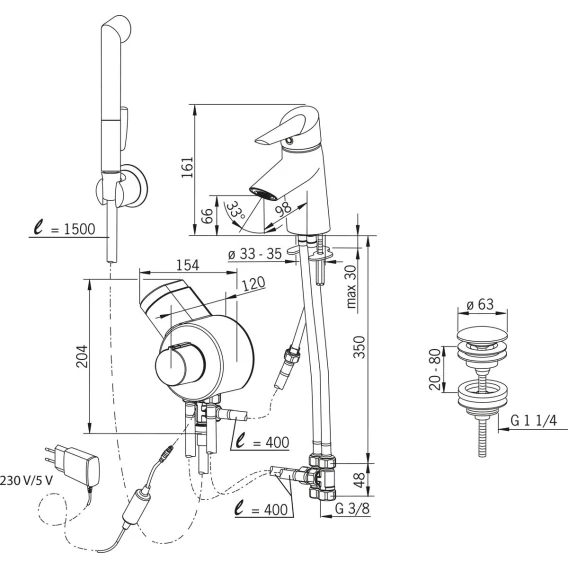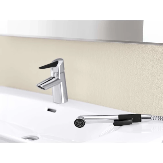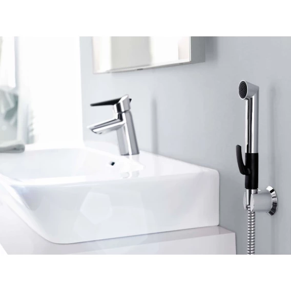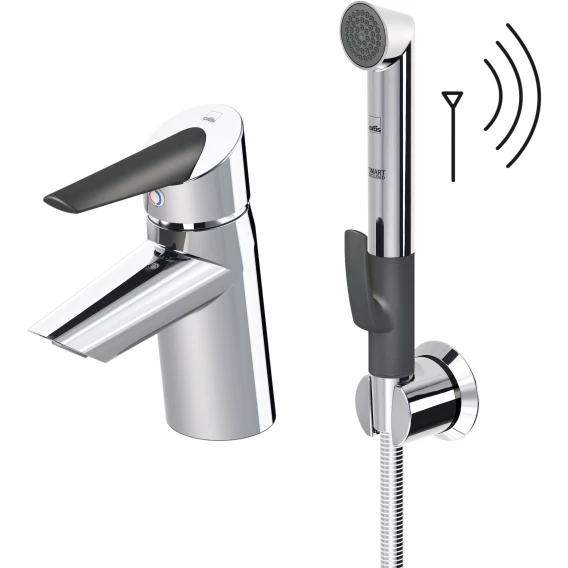 Однорычажный смеситель для умывальника с удобной рукояткой, термостатическим блоком управления, ручным душем Smart Bidetta и донным клапаном. Удобная рукоятка, выполненная из приятного на ощупь материала, регулирует температуру и скорость потока воды. Термостатический блок управления смесителя поддерживает желаемую температуру воды на одном уровне при пользовании душем Smart Bidetta. В производстве были использованы только экологические материалы.
