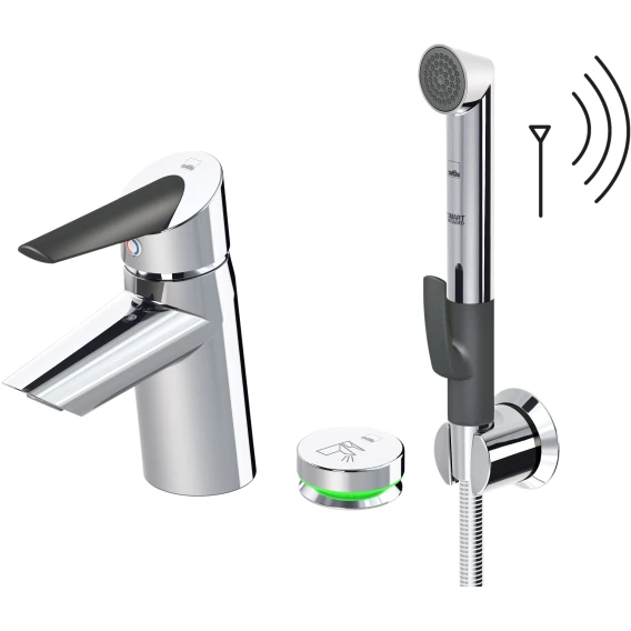 Однорычажный смеситель для умывальника с удобной рукояткой, термостатическим блоком управления, ручным душем Smart Bidetta, smart кнопкой и донным клапаном. Удобная рукоятка, выполненная из приятного на ощупь материала, регулирует температуру и скорость потока воды. Термостатический блок управления смесителя поддерживает желаемую температуру воды на одном уровне при пользовании smart кнопкой и душем Smart Bidetta. В производстве были использованы только экологические материалы.