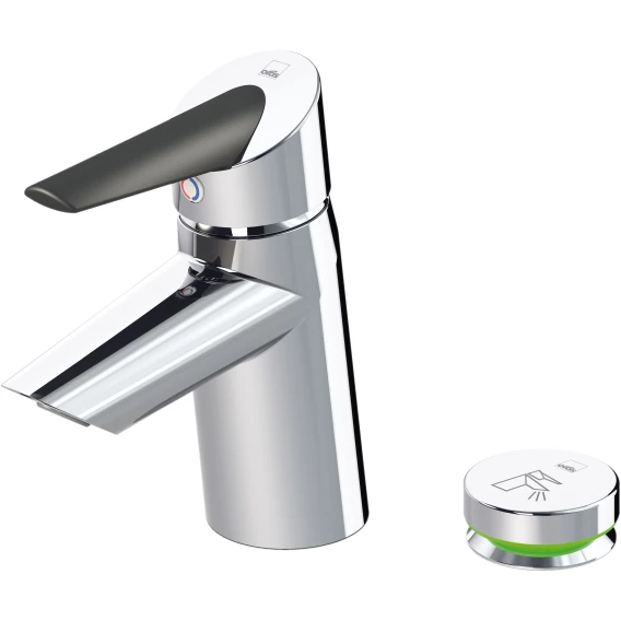 Однорычажный смеситель для умывальника с удобной рукояткой, термостатическим блоком управления, smart кнопкой. Удобная рукоятка, выполненная из приятного на ощупь материала, регулирует температуру и скорость потока воды. Термостатический блок управления смесителя поддерживает желаемую температуру воды на одном уровне при пользовании smart кнопкой. В производстве были использованы только экологические материалы.