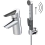 Однорычажный смеситель для умывальника с удобной рукояткой, термостатическим блоком управления, ручным душем Smart Bidetta. Удобная рукоятка, выполненная из приятного на ощупь материала, регулирует температуру и скорость потока воды. Термостатический блок управления смесителя поддерживает желаемую температуру воды на одном уровне при пользовании душем Smart Bidetta. В производстве были использованы только экологические материалы. В комплект входит гибкая подводка