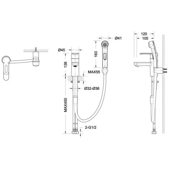Крепление, Аэратор, Гибкая подводка, Душевой шланг, Душевая лейка, Держатель для душевой лейки