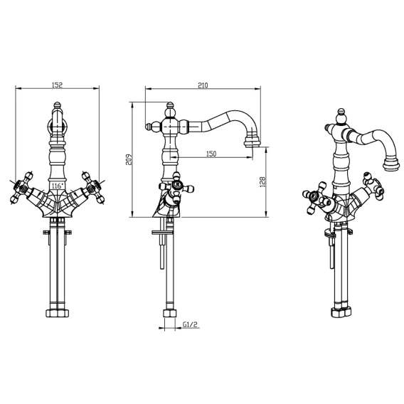 Смеситель для раковины Boheme Tradizionale Chromo 272