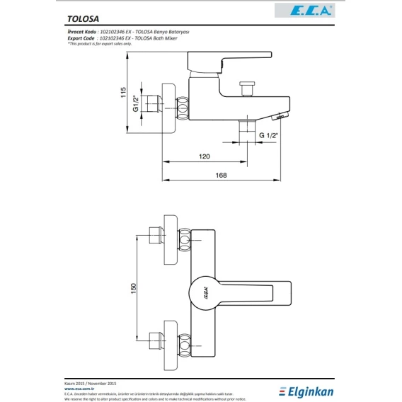 Смеситель для ванны E.C.A Mix D 102102346EX