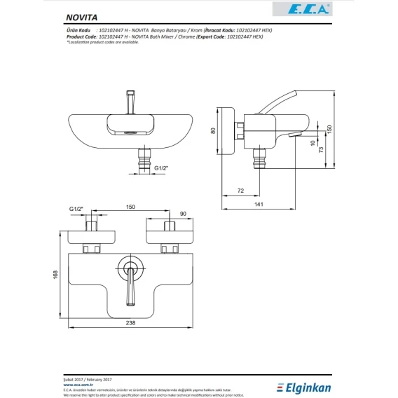 Смеситель для ванны E.C.A Novita 102102447HEX