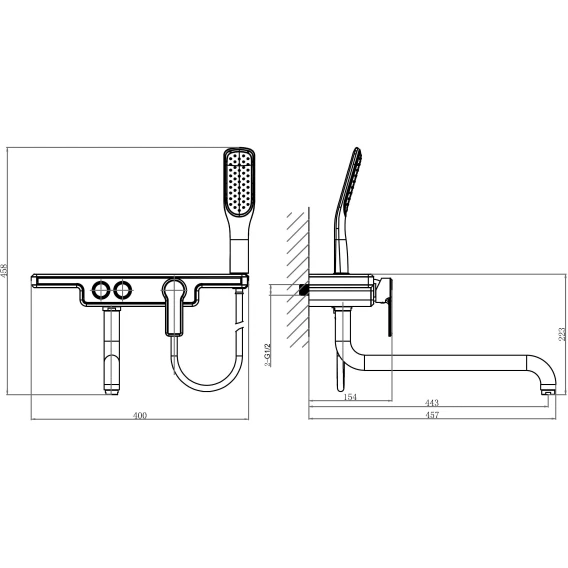 Аэратор, Металлическая розетка, Эксцентрики, Душевой шланг, Душевая лейка, Держатель для душевой лейки, Полочка