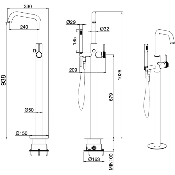 Смеситель напольный для ванны Allen Brau Priority 5.31008-GB золотой матовый