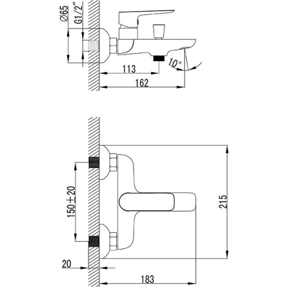 Смеситель для ванны 150 мм Ravak Classic CL 022.00/150