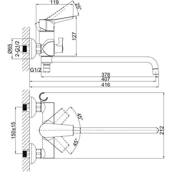 Аэратор, Металлическая розетка, Эксцентрики, Душевой шланг, Душевая лейка, Держатель для душевой лейки