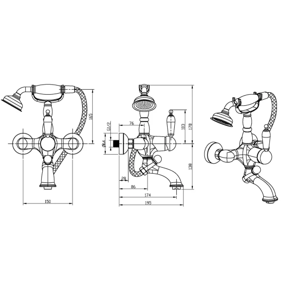 Смеситель для ванны Boheme Tradizionale Nero 253