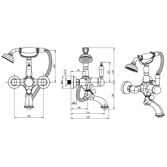 Смеситель для ванны Boheme Brillante Ripresa 343