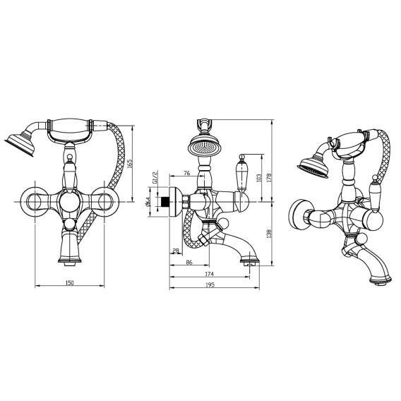 Аэратор, Металлическая розетка, Эксцентрики, Душевой шланг, Душевая лейка, Держатель для душевой лейки