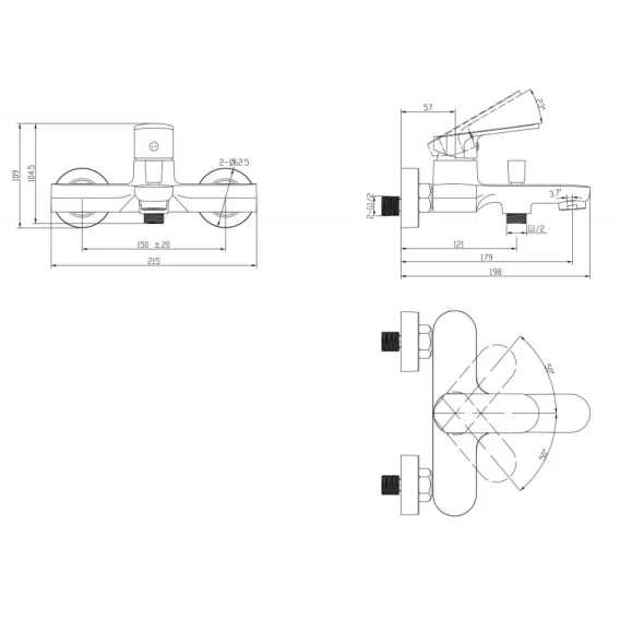 Смеситель для ванны BelBagno Tanaro ISO-VASM-CRM