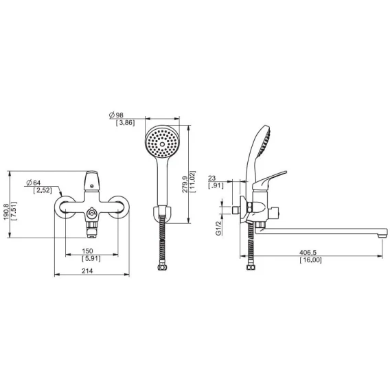 Аэратор, Металлическая розетка, Эксцентрики, Душевой шланг, Душевая лейка, Держатель для душевой лейки