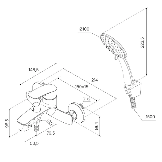 Аэратор, Металлическая розетка, Эксцентрики, Душевой шланг, Душевая лейка, Держатель для душевой лейки