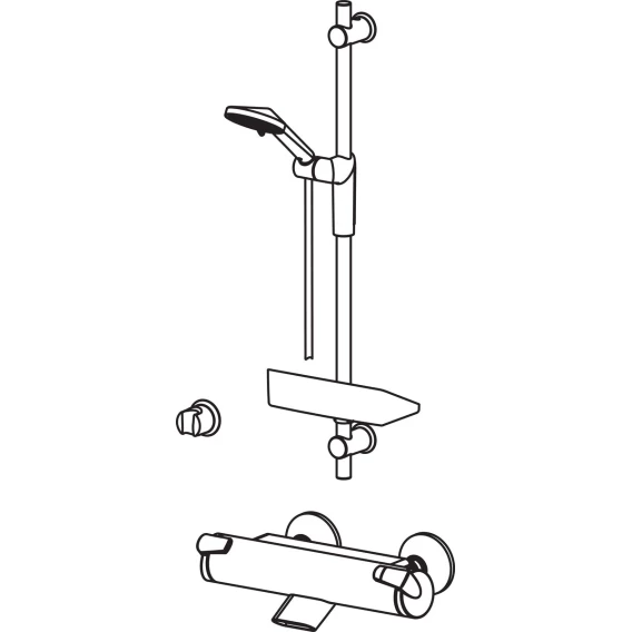 Аэратор, Металлическая розетка, Эксцентрики, Душевой шланг, Душевая лейка, Держатель для душевой лейки, Мыльница, Штанга душевая