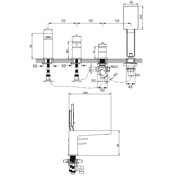 Крепление, Аэратор, Гибкая подводка, Душевой шланг, Душевая лейка