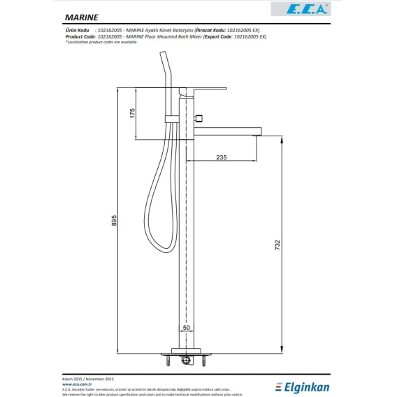 Смеситель напольный E.C.A Marine 102162005EX